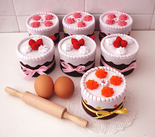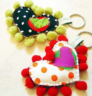 A maior parte dos seus trabalhos são em feltro, mas também trabalha com mais materiais. Faz desde pregadeiras a penduricalhos, com cores doces e suaves.